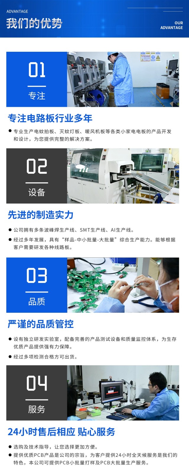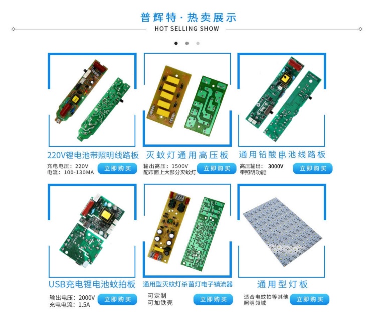 佛山市顺德区普辉特电子科技有限公司专业生产电蚊拍板.灭蚊灯板。暖风机板等各类小家电板的产品开发和设计,提供完整的解决方案。在质量上和交期上更有保障,公司以设计领先,功能齐全产品性能稳定,包装,出货等各个环节都有着严格的程序来控制把关,从而确保为顾客提供高质量、高效率的产品。